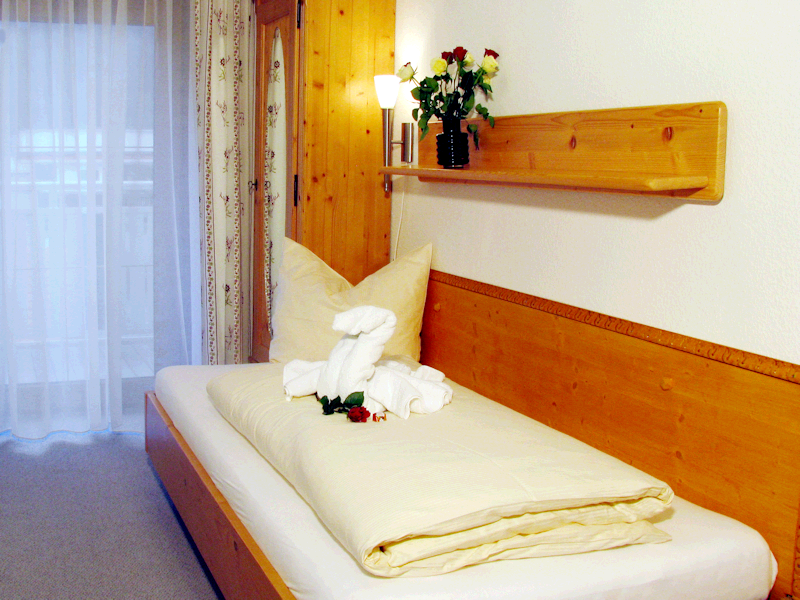 "Zwerg-Alpenrose" ist der liebevolle Name unseres Einzelzimmers mit einem fantastischen Blick in den Westen des Lechtals und